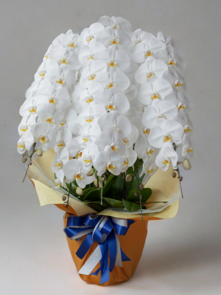 創業27年を迎えた信頼のおける生産者様が、ひと鉢ひと鉢、すべてオーダーメイドで作っている胡蝶蘭。花の美しさはもちろん、枝や葉、根の丈夫さ、そして花の持ちの良さを追求し育てられた最高品種です。